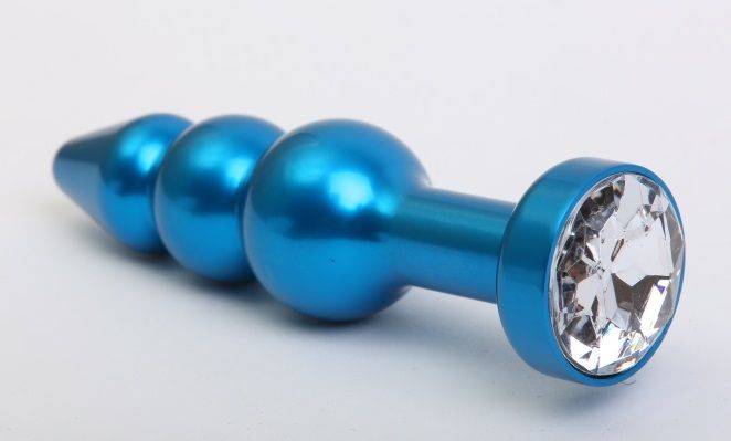 Синяя фигурная анальная пробка с прозрачным кристаллом 4sexdreaM 47430-4 (11,2 см)