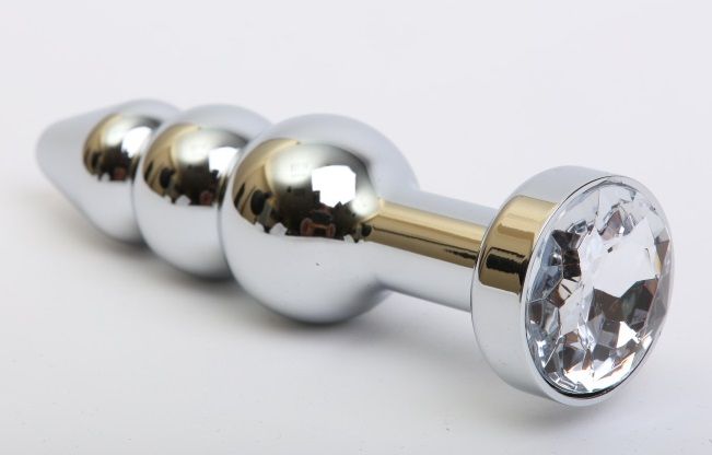 Серебристая анальная ёлочка с прозрачным кристаллом 4sexdreaM 47435-4 (11,2 см)