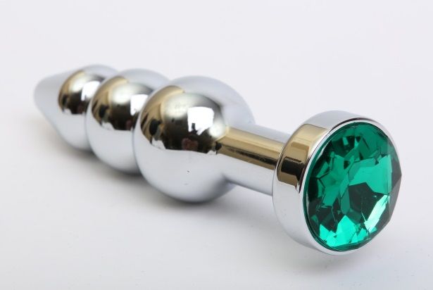 Серебристая анальная ёлочка с зелёным кристаллом 4sexdreaM 47435-6 (11,2 см)