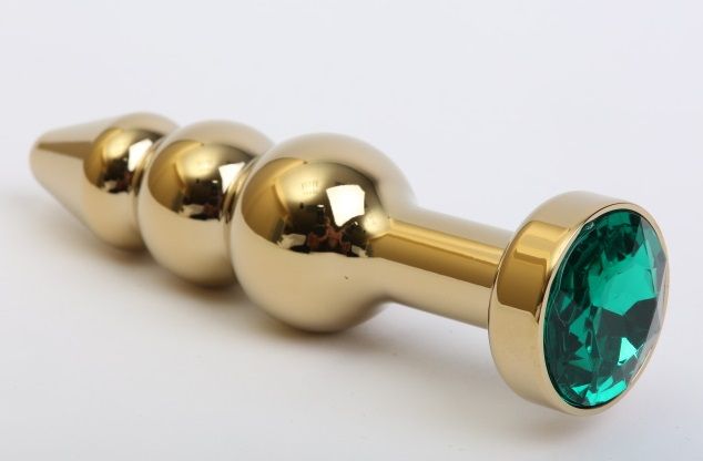 Золотистая анальная ёлочка с зелёным кристаллом