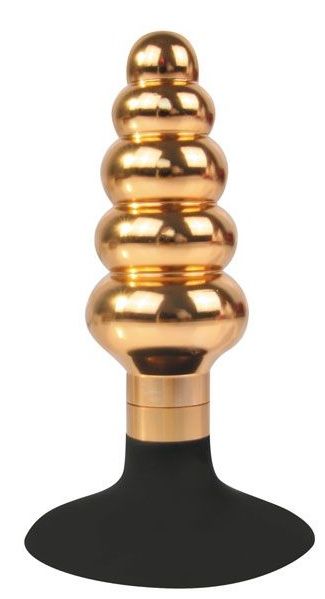 Золотисто-чёрная анальная пробка-ёлочка с круглым ограничителем
