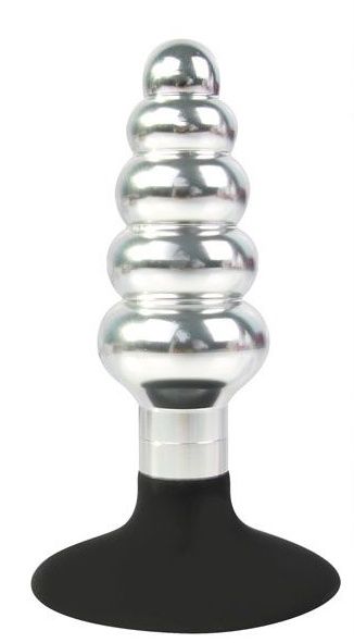 Серебристо-чёрная анальная пробка-ёлочка с круглым ограничителем
