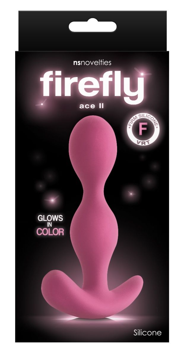 Анальная пробка Firefly - Ace II прекрасно подойдет для ценителей рельефа, ярких ощущений в теме анальной стимуляции. Пробка выполнена из непористого медицинского силикона, она обладает бархатистой поверхностью и достаточной гибкостью. Широкое основание игрушки не только предотвратит ее проскальзывание внутрь, но и гарантирует ее комфортное ношение. Пробка состоит из 2 звеньев-шариков, которые образуют четкий рельеф при введении, тем самым делая вагинальную стимуляцию более чувственной для обоих партнеров. Один из кончиков основания значительно шире и немного загнут, благодаря чему обеспечит стимуляцию промежности, еще больше усиливая Ваши ощущения. Также эта игрушка может светиться в темноте, помогая создать незабываемую атмосферу. Рабочая длина - 9,2 см.