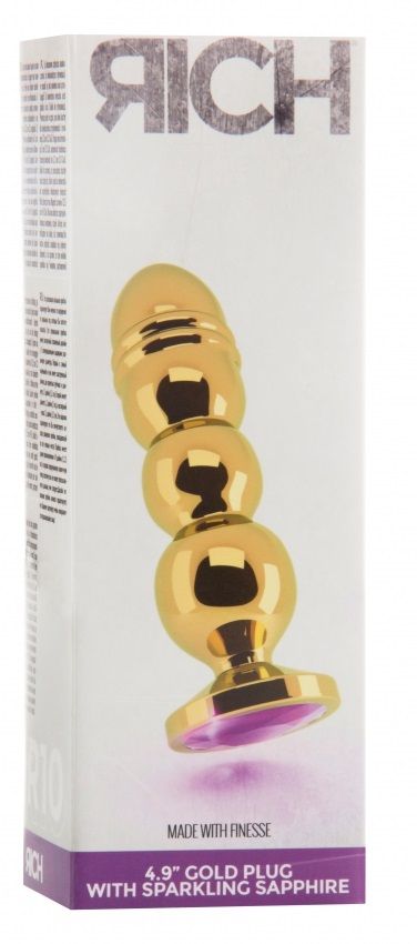Золотистая фигурная анальная пробка с фиолетовым кристаллом Shots Media BV R10 RICH Gold/Purple RIC010GLD (14,5 см)