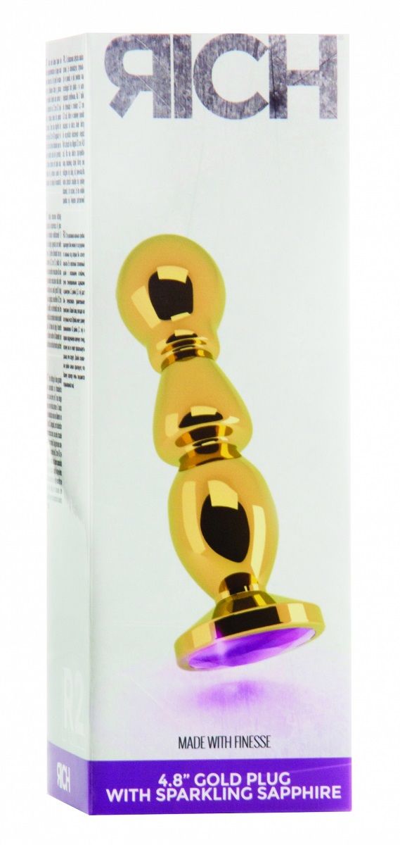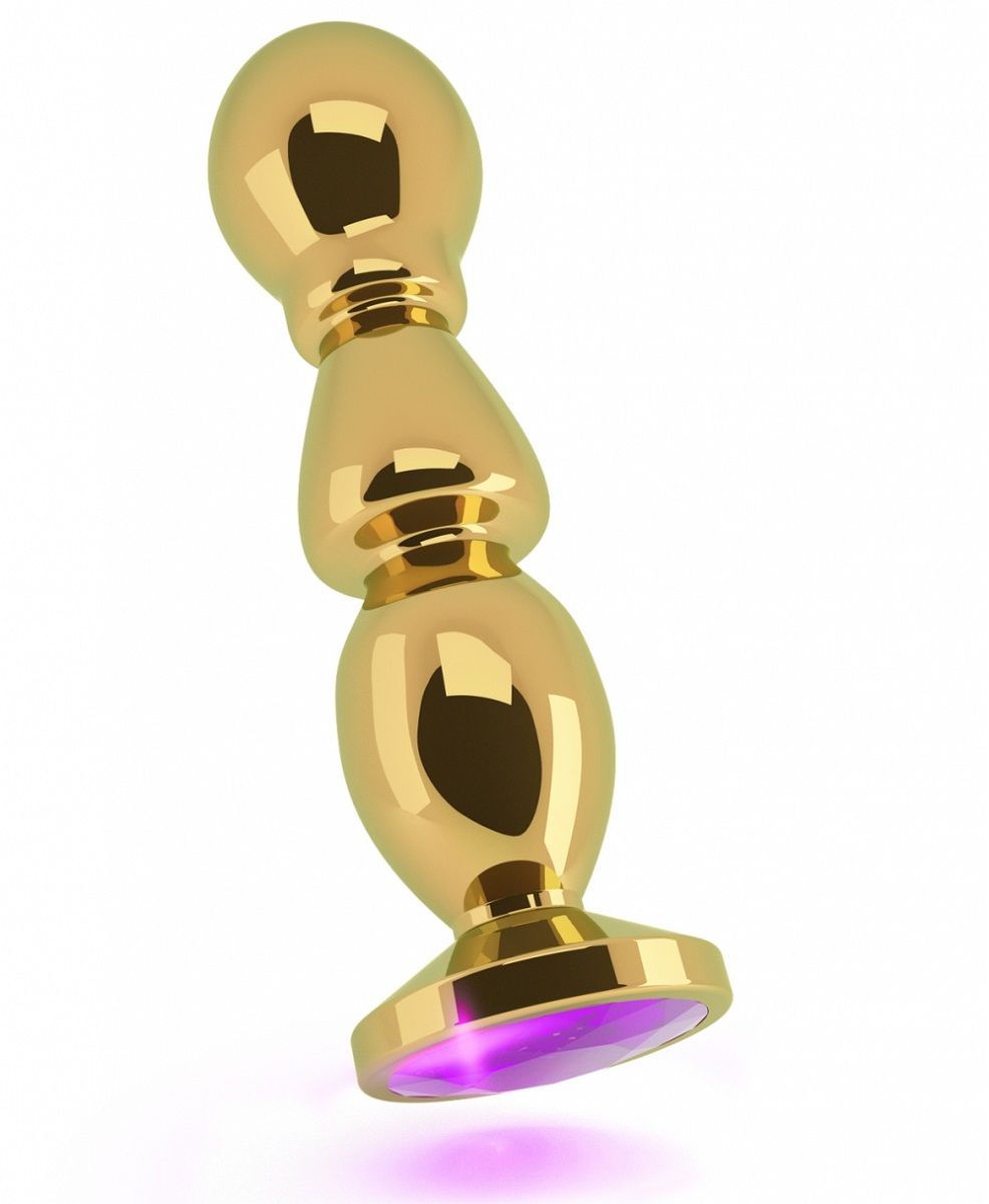Золотистая фигурная анальная пробка с фиолетовым кристаллом Shots Media BV RIC002GLD (14 см)