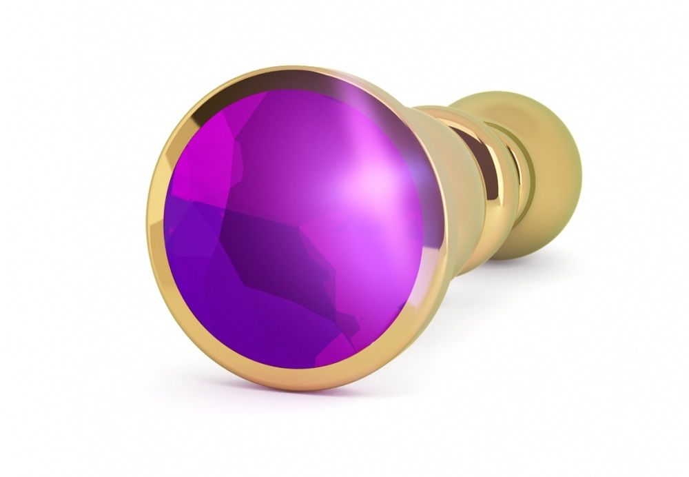 Золотистая фигурная анальная пробка с фиолетовым кристаллом