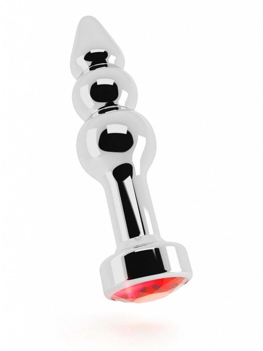 Роскошная анальная металлическая пробка имеет элегантный дизайн, плавные изгибы и эргономичную форму. Имеет удобную форму для анальных игр - заостренную вверху и плавно расширяющуюся нижнюю часть с ограничительным основанием для безопасного использования. Игрушку можно нагревать или охлаждать для придания играм более красочных ощущений. Основание пробки украшает великолепный страз красного цвета. Рабочая длина - 10 см.