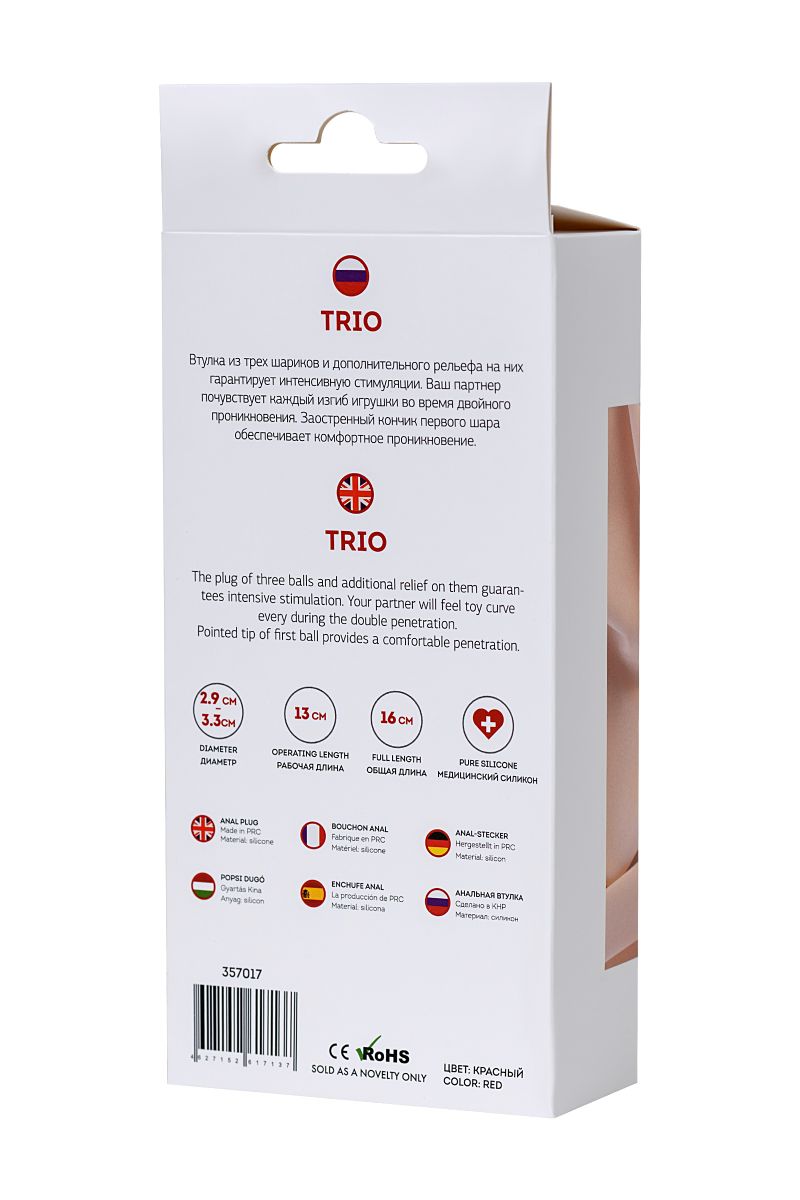 Втулка из трех шариков и дополнительного рельефа на них гарантирует интенсивную стимуляцию. Ваш партнер почувствует каждый изгиб игрушки во время двойного проникновения. Заостренный кончик первого шара обеспечивает комфортное проникновение. Рабочая длина - 13 см. Минимальный диаметр - 2,9 см.