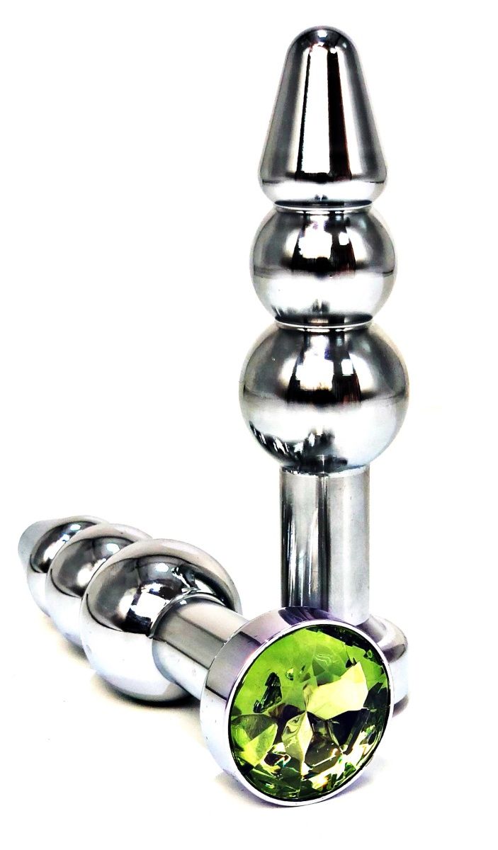 Серебристая коническая анальная пробка-ёлочка с лаймовым кристаллом Vandersex 159-G1 (11 см)