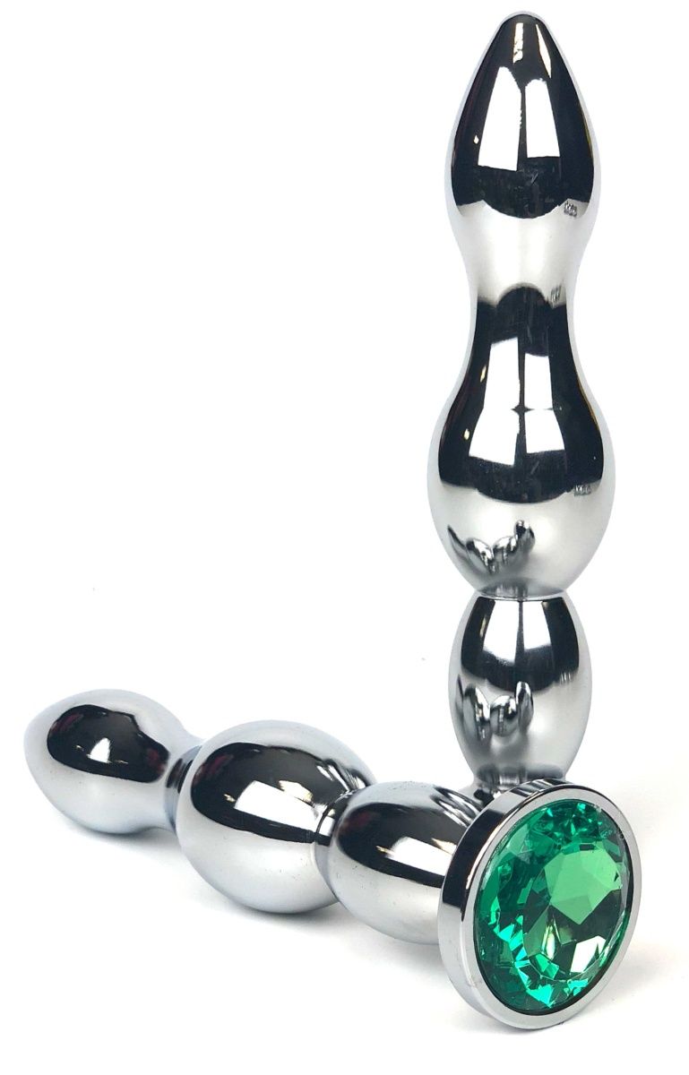 Серебристая коническая анальная пробка-ёлочка с зеленым кристаллом Vandersex 159-MA10 (12 см)