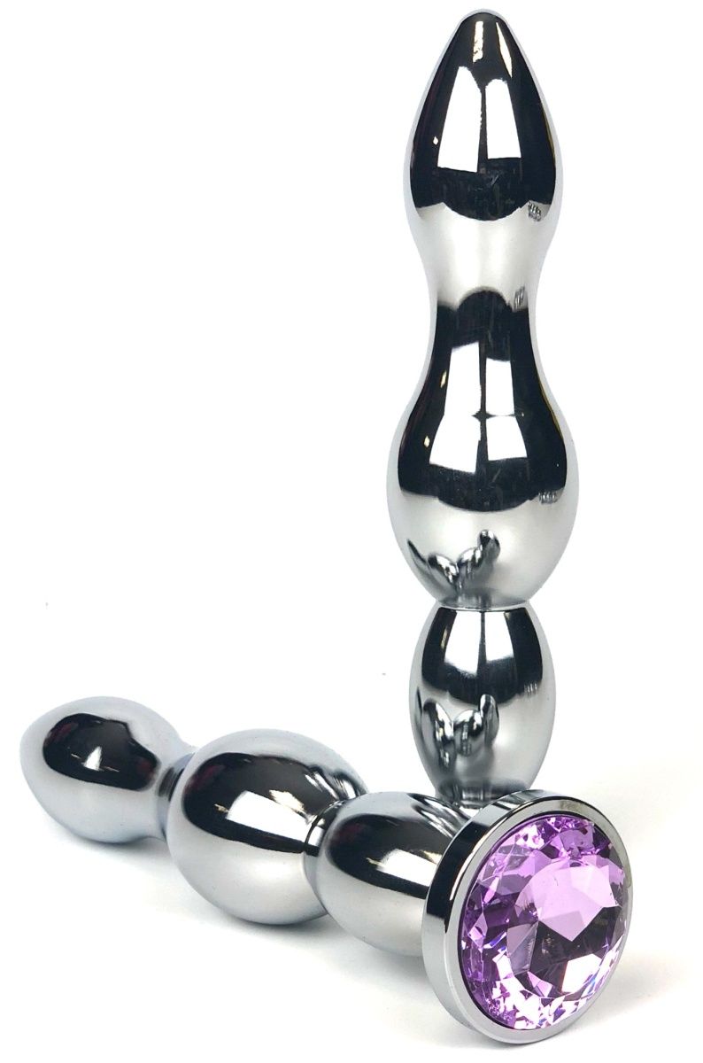 Серебристая коническая анальная пробка-ёлочка с сиреневым кристаллом Vandersex 159-MA3 (12 см)