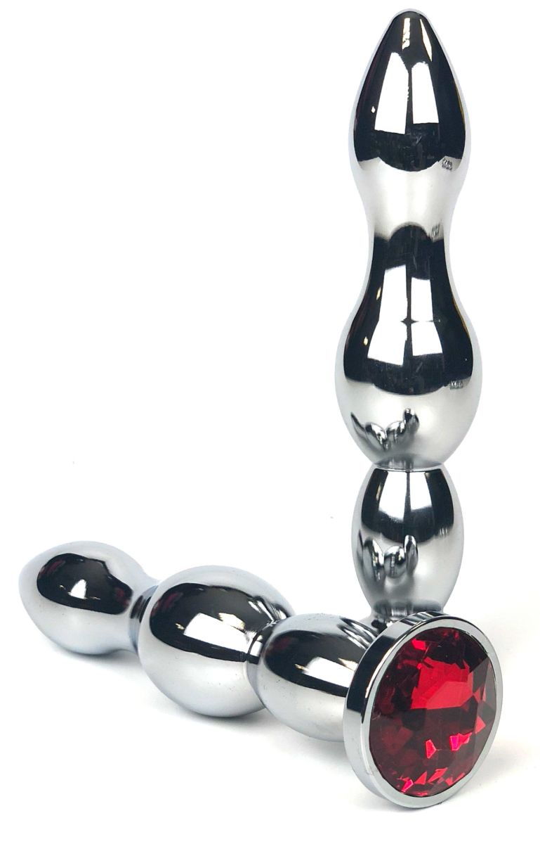 Серебристая удлиненная анальная пробка-ёлочка с красным кристаллом Vandersex 159-MA5 (12 см)