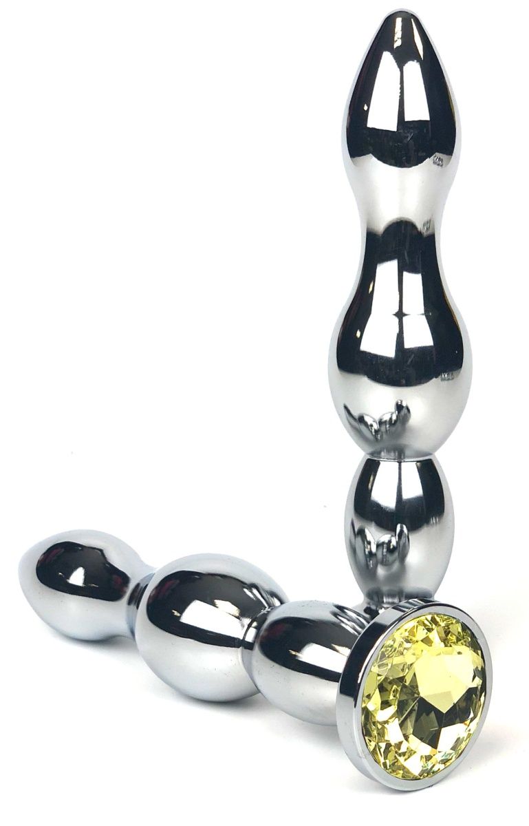Серебристая металлическая анальная пробка-ёлочка с жёлтым кристаллом Vandersex 159-MA6 (12 см)