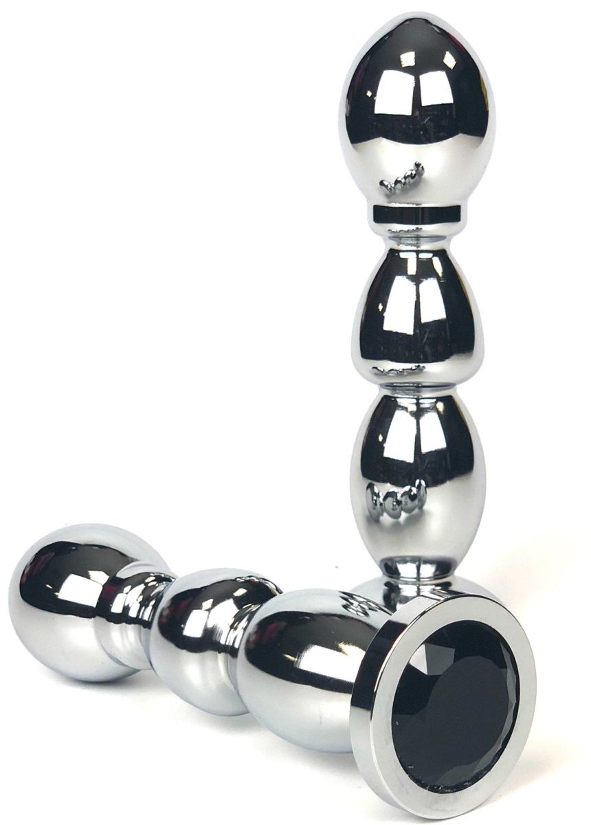 Серебристая закругленная анальная пробка-ёлочка с чёрным кристаллом Vandersex 159-MAL1 (13 см)