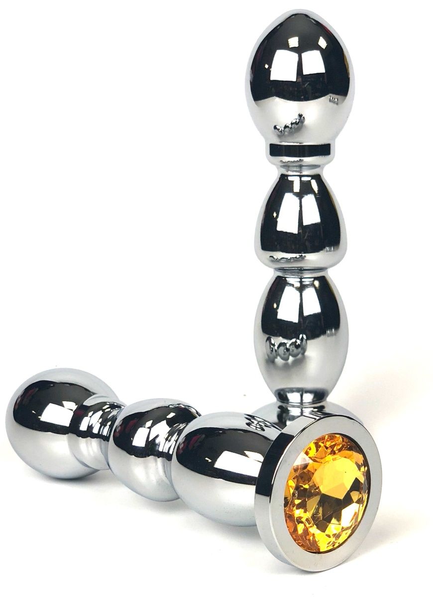 Серебристая анальная пробка-ёлочка с жёлтым кристаллом Vandersex 159-MAL4 (13 см)