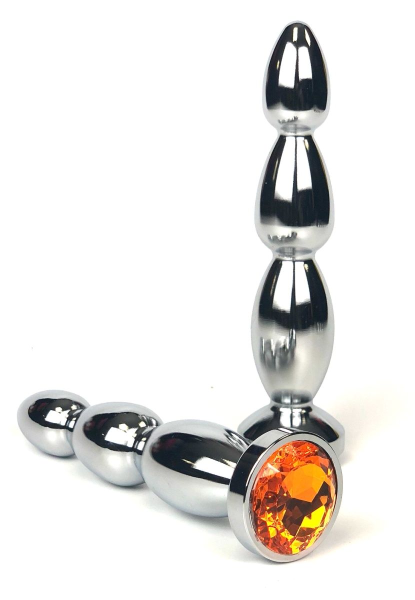 Серебристая коническая анальная пробка-ёлочка с оранжевым кристаллом Vandersex 159-MAS11 (13 см)