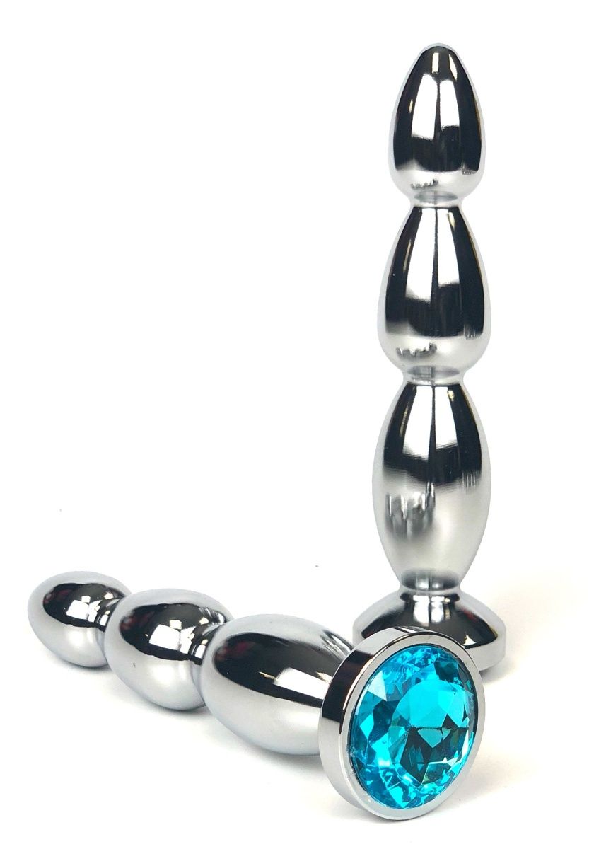 Серебристая удлиненная анальная пробка-ёлочка с голубым кристаллом Vandersex 159-MAS14 (13 см)