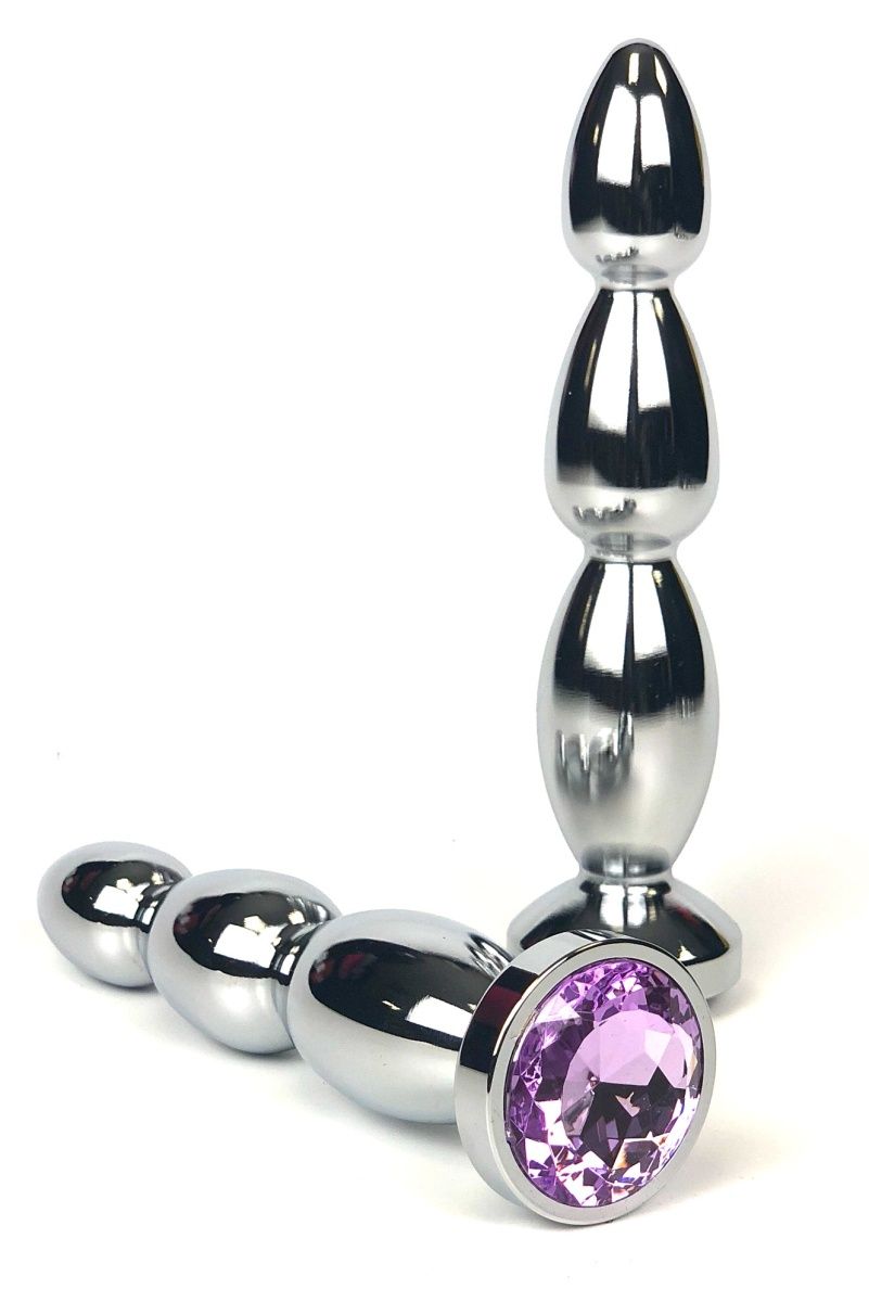 Серебристая удлиненная анальная пробка-ёлочка с сиреневым кристаллом Vandersex 159-MAS4 (12 см)
