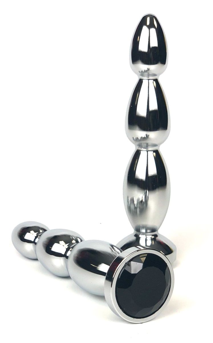 Серебристая удлиненная анальная пробка-ёлочка с чёрным кристаллом Vandersex 159-MAS5 (12 см)