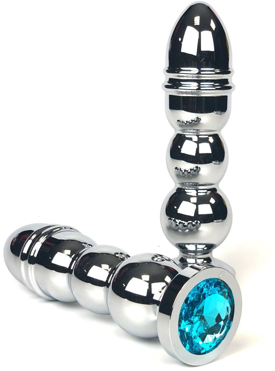 Серебристая анальная ёлочка с голубым кристаллом Vandersex 159-MAT20 (13 см)