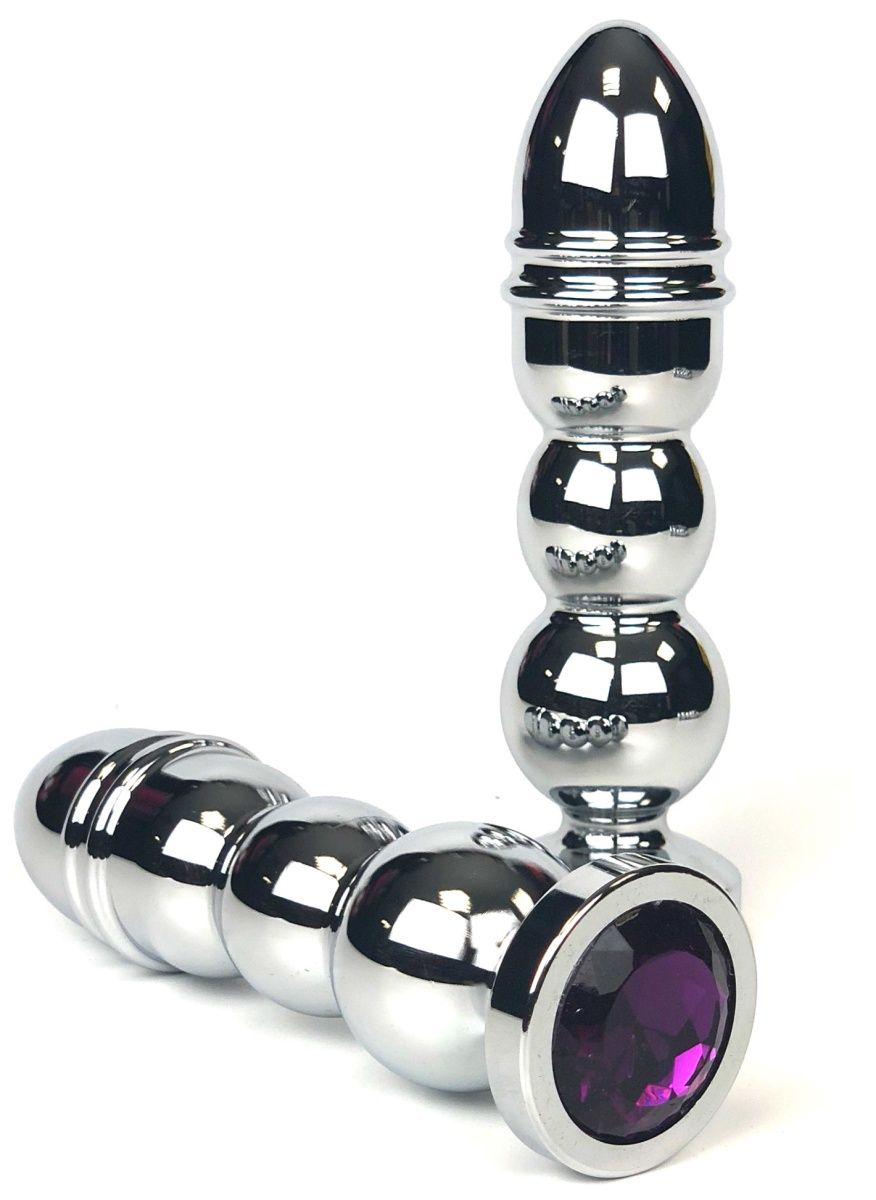 Серебристая анальная пробка-ёлочка с фиолетовым кристаллом Vandersex 159-MAT3 (13 см)