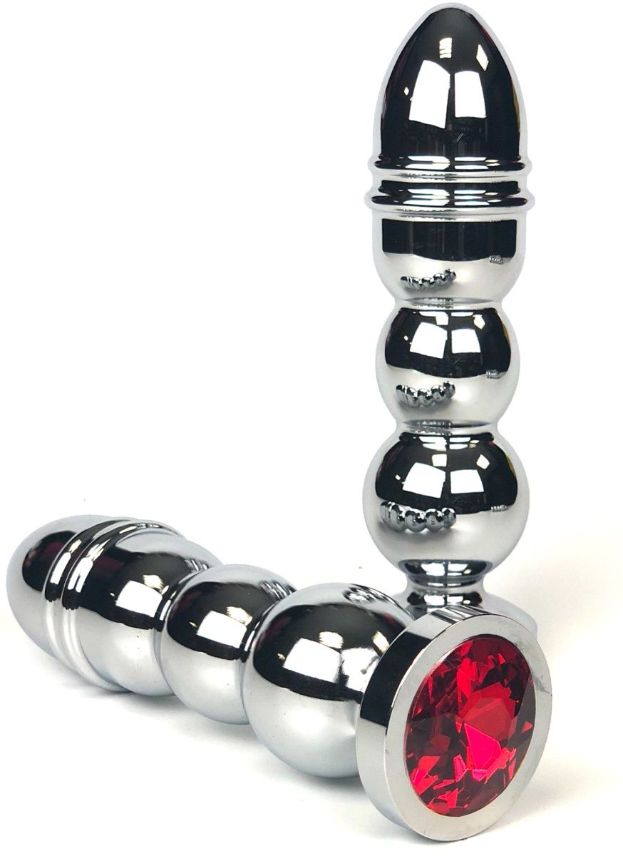 Серебристая анальная пробка-ёлочка с красным кристаллом Vandersex 159-MAT8 (13 см)