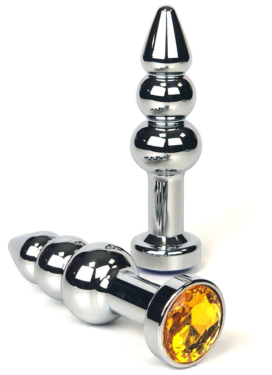 Серебристая анальная пробка-ёлочка с оранжевым кристаллом Vandersex 159-Z (11 см)