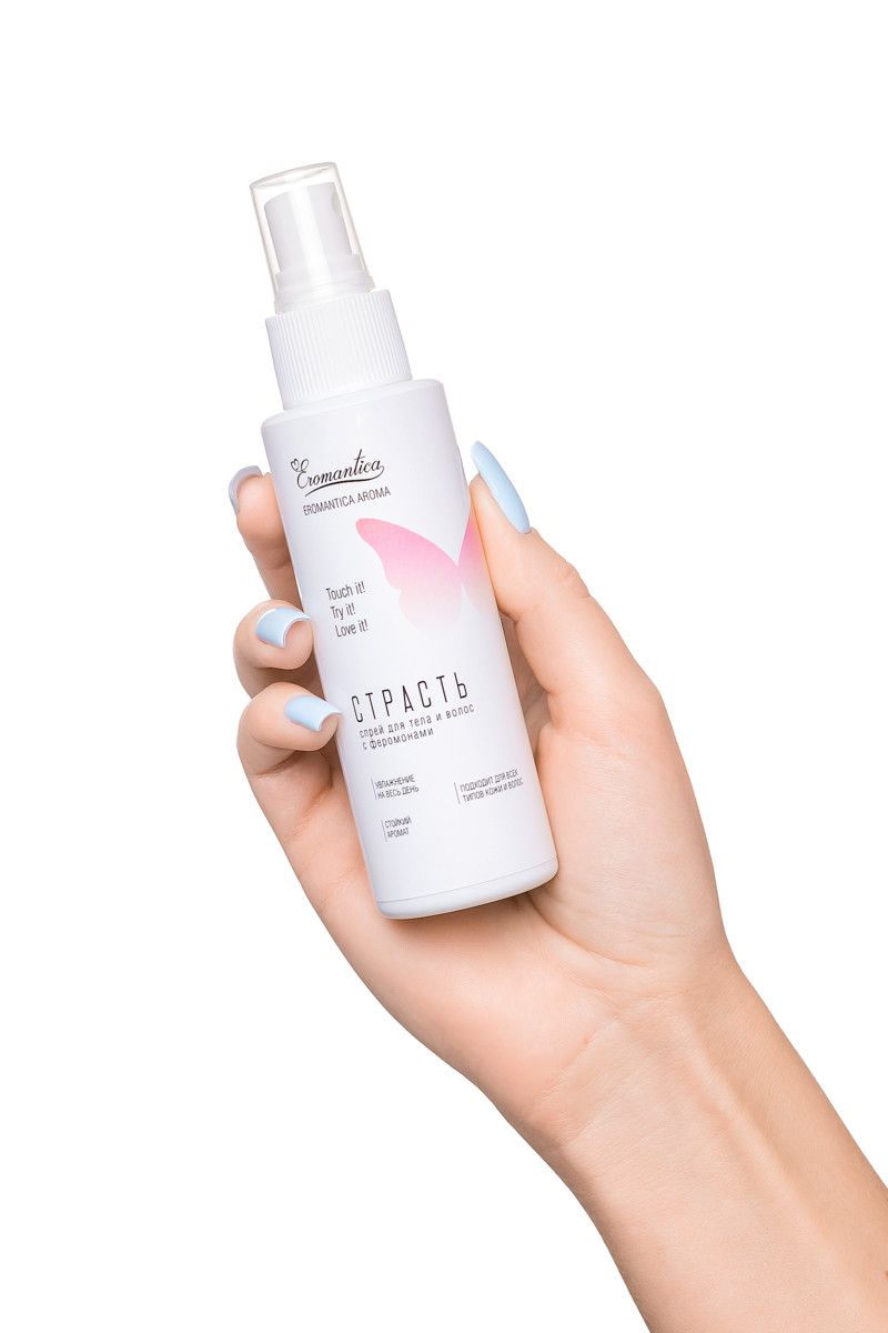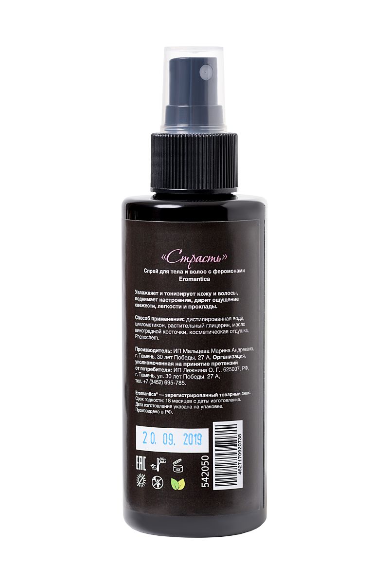 Манит, соблазняет…. С новым спреем из коллекции Eromantica Aroma «Страсть» ты станешь особенно привлекательной в глазах окружающих и почувствуешь уверенность в любой компании, благодаря природным феромонам и аромату, гарантирующему море желания и страсти... Освежает, увлажняет лицо, тело и волосы. Оставляет шлейф аромата терпких объятий и страстных свиданий.