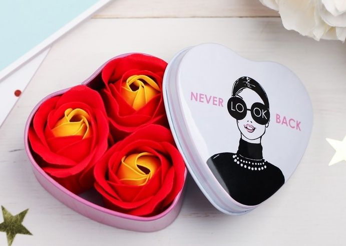Красные мыльные розочки в стильной шкатулке-сердце Сима-Ленд Never look back 4669476 (3 шт)