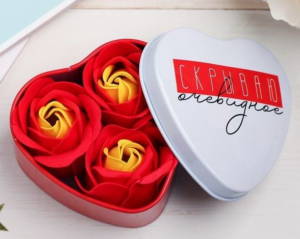 Красные мыльные розочки в шкатулке-сердце Сима-Ленд «Скрываю очевидное» 4669477 (3 шт)