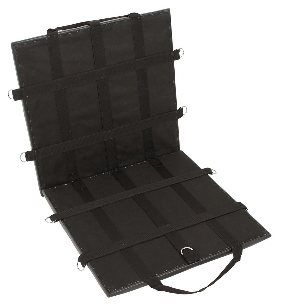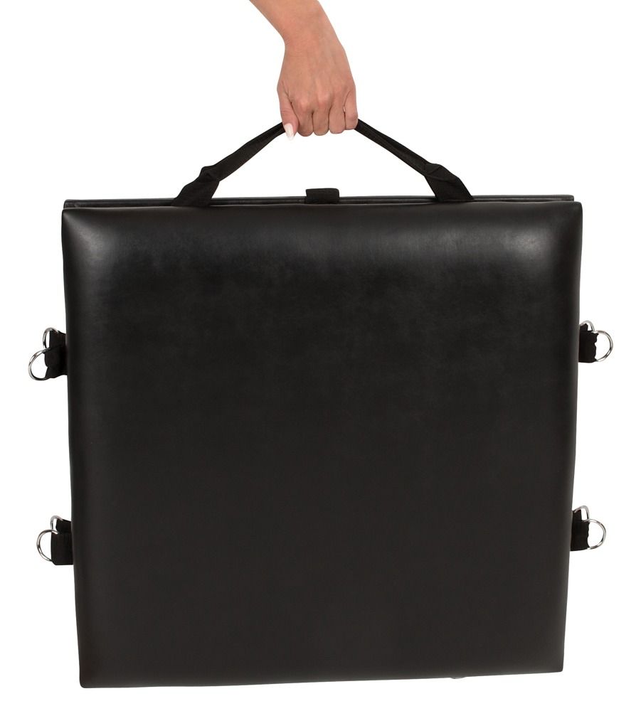 Переносная доска для связывания с плечевым ремнем. Для всех пар, которые хотят наслаждаться своими фетиш-фантазиями где угодно. В комплекте: складная доска с ремнем для переноски и набором для фиксации и ограничения, 4 манжеты для рук и ног, 1 шейный ремень с карабиновыми крючками, маска для глаз, кляп-шарик, ремни для фиксации. Длина стола в собранном виде – 60 см., ширина – 60 см. Длина манжеты – 39 см., ширина – 6 см. Ширина ошейника – 5,5 см. Диаметр шарика-кляпа – 4,1 см. Длина кнута – 38 см. Вес стола – 7,1 кг.