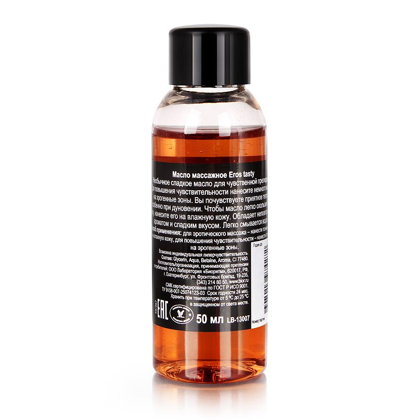 Масло массажное «Eros Tasty» для эротического массажа. Вызывает ощущение тепла, особенно при дуновении. Повышает чувствительность. Имеет приятный аромат шоколада и сладкий вкус. Обеспечивает длительное скольжение. Легко смывается водой.