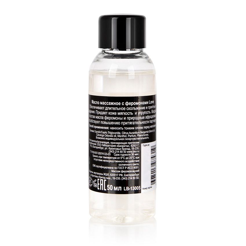 Поверьте, ещё никогда массаж не был таким волнующим! Массажное масло Love, нанесённое на кожу кончиками пальцев, сделает кожу мягкой и упругой, а вашего партнёра – дико возбуждённым. Виной тому и чувственные прикосновения, и входящие в состав масла феромоны. Обволакивая вас обоих дымкой страсти, они наполнят ваши тела жаром и плотским желанием!