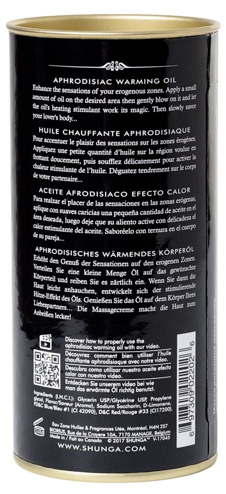 Разогревающее и съедобное масло для тела с натуральными ароматом экзотических фруктов. Усильте удовольствие и ощущения эрогенных зон вашего партнера. Согревающий эффект масла в сочетании с превосходным ароматом экзотических фруктов доставят максимум удовольствий. •Изготовлено из чистого растительного глицерина и экстракта семян кукурузы, являющихся сертифицированными органическими продуктами •Превосходный аромат экзотических фруктов •Идеально подходит для использования на эрогенных зонах •Согревающий эффект возникает благодаря теплому дыханию •Восхитительный вкус •Усиливает ощущения •Не содержит сахара Используйте во время предварительных ласк, чтобы усилить ощущения и продлить наслаждение. Нанесите небольшое количество масла на все тело и особенно на эрогенные зоны. Начинает действовать от горячего дыхания нежных интимных поцелуев.