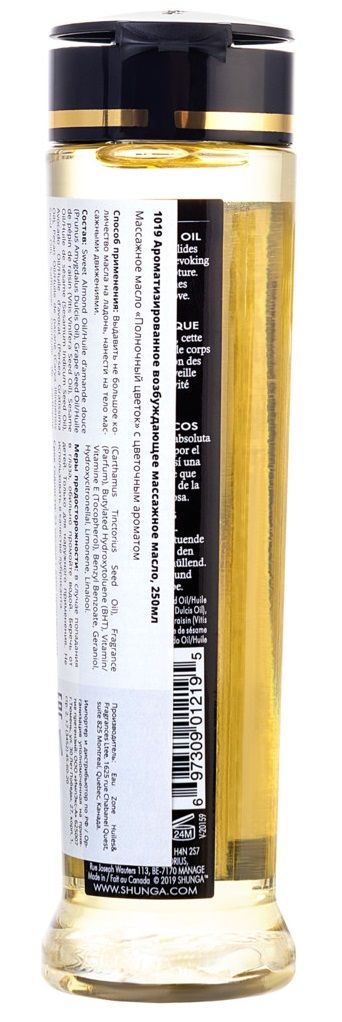 Массажное масло с ароматом ночных цветов Seduction Midnight Flower . 100% натуральные масла холодного отжима, с витамином Е (антиоксидант), без жирных остатков, не забивает поры, нет минерального или животного масла. Мягкость и шелковистость этого масла с приятным скользящим эффектом на коже вызывает ощущение полного восторга. Сексуальное желание нарастает и вы готовы к любви. Получите взаимное удовольствие от чувственного эротического массажа с использованием нашей эксклюзивной смеси масел холодного отжима, тщательно отобранных за свои стимулирующие и придающие энергию свойства. Масло легко скользит по коже, не оставляя жирных ощущений, в то время как различные экзотические ароматы поднимут ваши чувства до вершин возбуждения. Идеально подходит для того, чтобы насладиться расслабляющим массажем или сделать его, совместив с обволакивающими обольстительными ласками. Это на 100 % натуральное масло с упоительным ароматом, легко скользит по коже, не оставляя жирной пленки. Запах массажному маслу придают эфирные масла и отдушки, что в отличие от большей части другой продукции SHUNGA, ароматизированной вкусовыми добавками, делает его несъедобным.