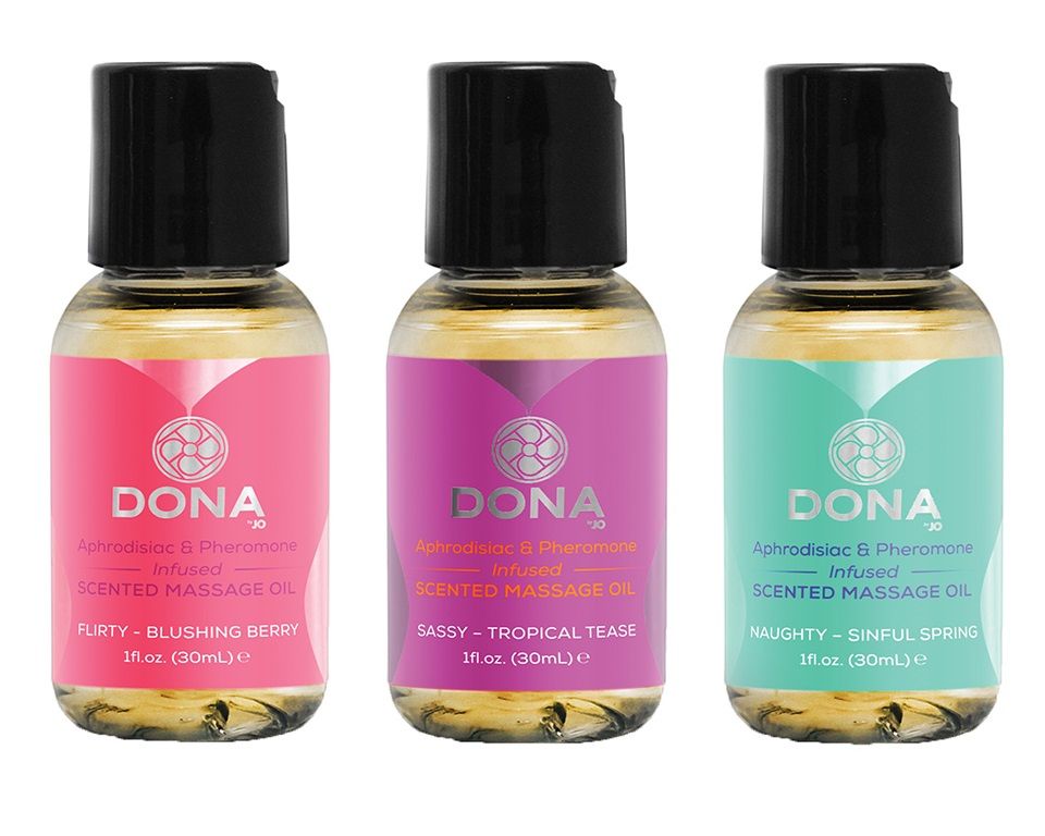 Подарочный набор из трех предметов: массажное масло Massage Oil Flirty Aroma Blushing Berry, массажное масло Massage Oil Sassy Aroma Tropical Tease, массажное масло Massage Oil Naughty Aroma Sinful Spring. В полимерных флаконах по 30 мл. каждый. В упаковке 3 флакона по 30 мл. каждый.