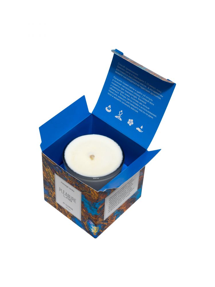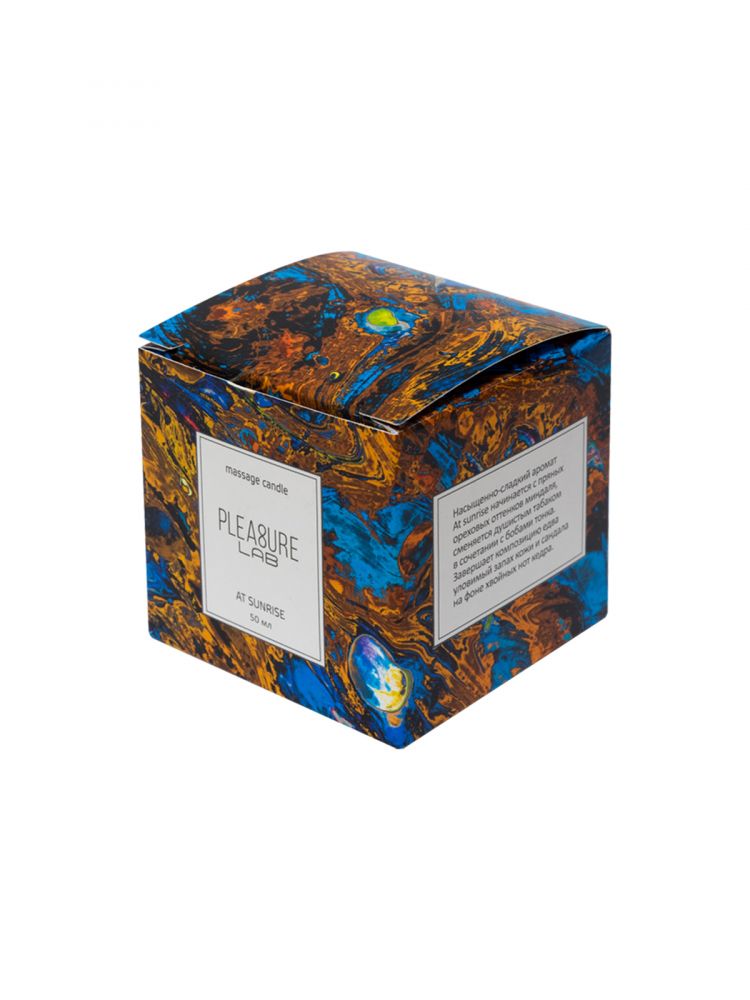 Массажная свеча Pleasure Lab - прекрасный проводник от легких заигрываний до страстного секса. За счет приятного аромата свеча дарит ароматерапевтический эффект, позволяет расслабиться и создать интимную атмосферу. Свеча At sunrise обладает насыщенно-сладким ароматом с оттенками табака и какао. В состав свечей входят органические компоненты: натуральный соевый воск, натуральные масла: ши, миндальное, кунжутное, виноградных косточек, ароматическая композиция и хлопковый фитиль. Способ применения: Зажгите свечу и подождите 5-10 минут, пока расплавятся массажные масла. В это время вы можете наслаждаться её чудесным ароматом. Погасите пламя свечи и дайте ей остыть в течение нескольких секунд. Соевый воск плавится при температуре, близкой к температуре кожи, поэтому им нельзя обжечься. Теперь свеча готова к использованию. Нанесите немного растаявшего масла на руки, тело и можете начинать массаж. Время горения - 5,5 часов.