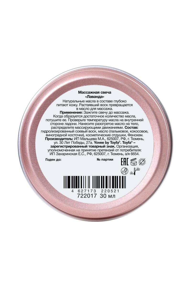 Натуральные масла в составе глубоко питают и увлажняют кожу. Растаявший воск превращается в масло для массажа. Свеча станет идеальным аксессуаром для романтического свидания. Идея для свидания: устройте вечер релакса и спа-процедур. Предложите партнеру расслабиться в ожидании массажа. Затушите свечу и немного подождите, пока масло остынет. Лейте масло вдоль спины медленно, а затем начните с легких массирующих движений. Сделайте массаж своим обнаженным телом - так он станет еще более интимным и чувственным. Такое свидание останется в памяти надолго! Свеча подарит незабываемые ощущения, после которых вам гарантированы нежные и мягкие прикосновения!