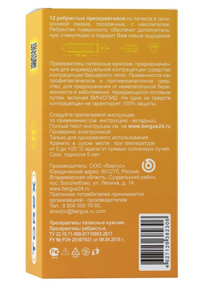 Ребристая поверхность обеспечит дополнительную стимуляцию и подарит новые ощущения. В упаковке - 12 шт. Номинальная ширина - 54 мм. Толщина стенки - 0,06 мм.