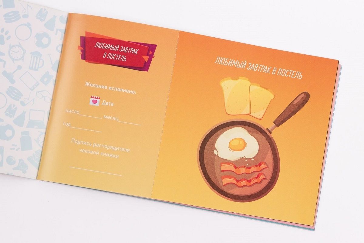 Есть вещи, которые не купишь за деньги. Это любовь и внимание - это самое ценное что у нас есть. А значит Чековая Книжка Желаний – самый дорогой подарок, т.к. вы дарите эти самые бесценные вещи - Любовь и Внимание. С этим подарком вы обязуетесь выполнить 12 простых, но в тоже время очень приятных «квестов»/желаний вашего мужчины. Чековая Книжка Желаний: Для Него – это безусловно яркий и оригинальный подарок который обязательно порадует любого мужчину. Как пользоваться Чековой Книжкой Желаний: 1. Ваш мужчина в любой день и время, когда, пожелает отрывает чек с желанием и предъявляет его вам на исполнение. 2. После выполнения желания, он обязательно должен поставить отметку на корешке чека с датой и подписью о том, что желание было исполнено. 3. Передавать желания или Чековую Книжка Желаний кому-то другому нельзя. 4. Только 1 желание в день. 5. Срок годности книжки – 1 год с момента выполнения первого желания.