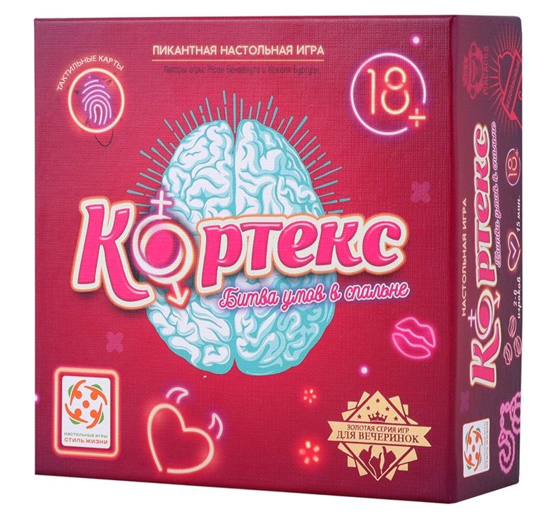 Тактильные ощущения, внимательность, память, скорость реакции, логика, устный счёт – теперь развивать смекалку не только весело, но и соблазнительно… Кортекс – настольная игра, которая подстегнёт не только ваш ум! Размер вашего мозга тоже имеет значение. В составе коробки 90 карт, 24 фишки победных очков, правила игры.