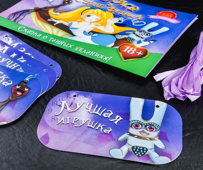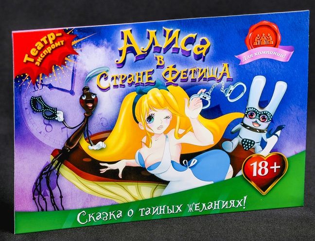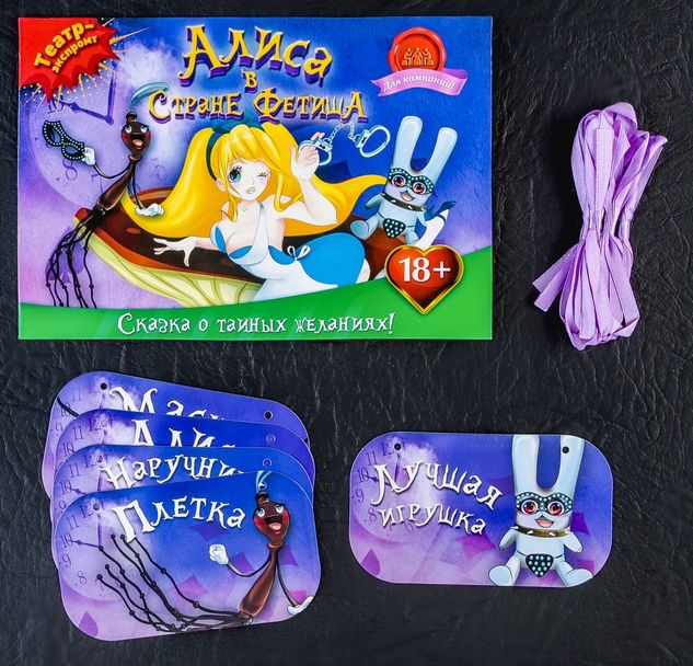 Развлекаемся-раскрываемся……страстной сказкою наслаждаемся! Окунитесь в мир ваших тайных желаний, сделав из них чудо-спектакль! Оказавшись в Стране Фетиша, Алисе пришлось столкнуться с её различными пикантными жителями и с каждой ситуацией она справилась просто блестяще! Убедитесь в этом сами… Начинаем веселиться! Всё, что вам нужно — это собраться весёлой компанией и распределить роли. Пусть каждый выберет персонажа себе по вкусу, взяв специальный бейдж с именем. Правила просты: ведущий читает текст сказки, а все участники внимательно следят за повествованием и в точности повторяют то, что озвучивает ведущий. Всё так просто, что ни в сказке сказать ни пером описать! В комплекте: откровенная сказка, 5 бейджей героев, лента.