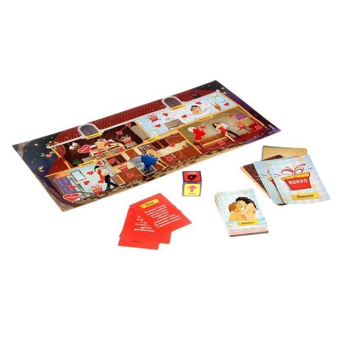 Пусть каждая комната в доме наполнится удовольствием, а стены хранят в секрете крики наслаждения! Выполняйте горячие задания и экспериментируйте — откройте новые границы желания… Бросайте кубик, передвигайтесь по полю и выполняйте задания в комнате, в которой остановилась фишка. Заигрывайте друг с другом, исполняйте страстные, соблазнительные и порой забавные задания, подогревая желание. В доме искушений скрываются коварные бонусные ходы, которые раскроют таинственный сценарий ролевой игры. Но будьте терпеливы… игрок, который первым доберётся до финиша, загадывает любое желание партнёру, и тот не вправе отказать! В комплекте: игровое поле кубик 2 фишки игроков 50 карточек с заданиями 10 карт с бонусами правила игры.