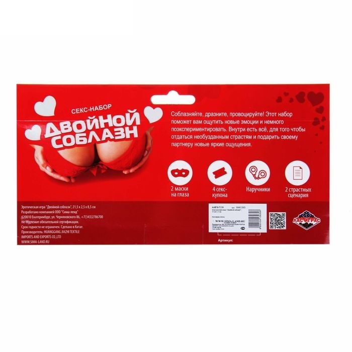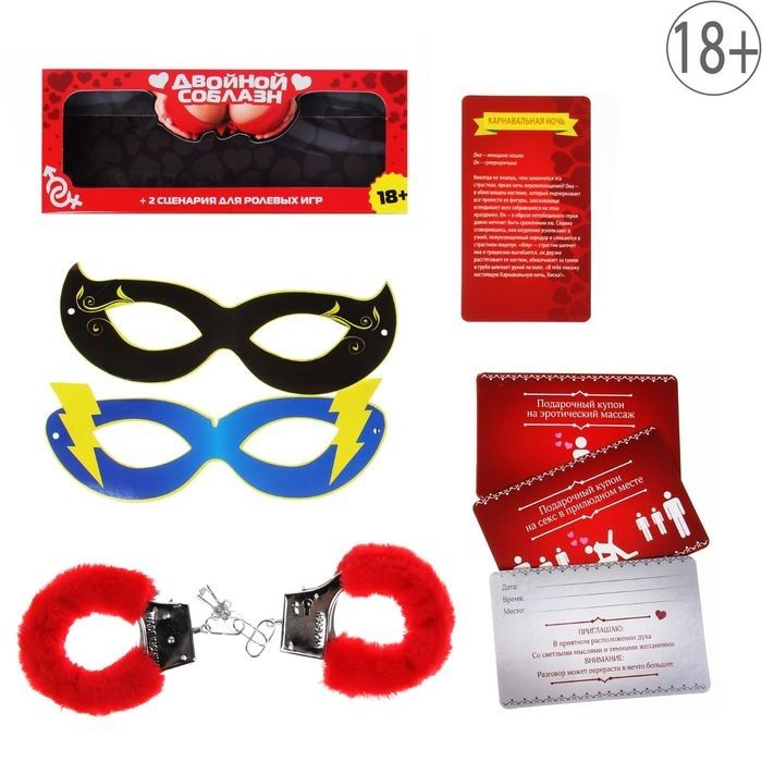 Ночь обжигающей страсти, утро сладкой любви – каждый день вы будете пробовать новый сценарий ваших отношений и, поверьте, это будет незабываемо! Дарите друг другу секс-купоны, показывая, что вы готовы на всё по требованию любимого человека. Разрешите приковать себя к спинке кровати и подчинитесь партнёру, а потом – поменяйтесь местами! Примерьте маски и фантазируйте о том, чью роль вы хотите сыграть сегодня. Используйте 2 невероятно возбуждающих секс-сценария, которые откроют для вас новые оттенки страсти! Такие совместные вечера с эротическими утехами превратятся в яркие впечатления, которые останутся с вами надолго! В комплекте: 2 маски наручники 2 сценария ролевых игр 4 эротических подарочных купона.