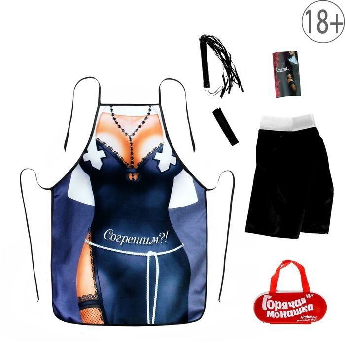 Невинная монашка даст жару любой, даже самой соблазнительной диве. Включайте фантазию и отключайте стеснение. Вас ждут незабываемые ощущения, окунитесь в новую роль и прочувствуйте все её похотливые тонкости. Невинность и похотливость часто стоят на грани, большинство людей заводит именно это. Используйте три сценария, которые включают в себя неожиданные моменты. Добавляйте в историю свои желания. Может, у вас завалялась пара дерзких идей? Сейчас самое время их воплотить. Поможет вам в этом фартук, плётка и еще несколько элементов, которые входят в набор. Будьте откровенны и искренни в своих желаниях! Такой набор в удобной сумочке по достоинству оценят ваши друзья и знакомые. Также он отлично подойдёт в качестве подарка, который придётся по вкусу ценителям соблазнения. В наборе: фартук, плётка, шапка монашки, верёвка-лента, сценарии ролевых игр.