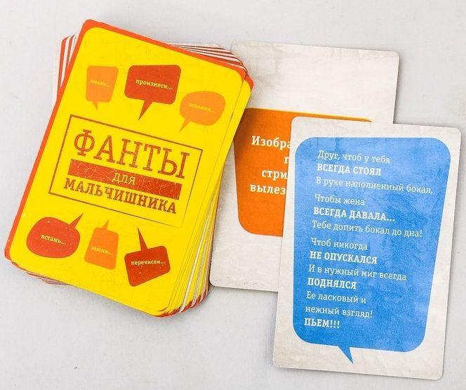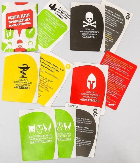 Фееричный мальчишник своими руками! Праздников много, а на ведущих хочется сэкономить? А может быть, вы специалист в области организации мероприятий? Больше вам не придется ломать голову над тем, как провести яркий мальчишник, ведь всё придумано за вас! Новая игра из серии «Весёлый тамада» «Мальчишник» станет настоящей находкой для тех, кто любит запоминающиеся праздники! В комплекте игры есть всё необходимое для проведения мальчишника, который запомнится надолго. Всё необходимое в одном месте. В игре вы найдете весёлые костюмированные поздравления, забавные фанты, конкурсы, тосты, а также интересные идеи, где и как провести мальчишник. Главное, не забудьте взять игру с собой! В комплекте: 7 карточек с идеями для проведения, 20 карточек с фантами, 10 карточек с тостами, 9 карточек со сценариями костюмированных поздравлений, правила проведения.