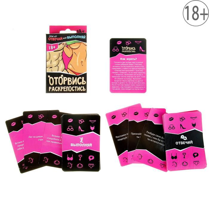 Вся суть в двух словах! Отличная идея для вечеринки и незабываемого отдыха вдвоем!Возьмите эту игру с собой на вечеринку и станьте королем веселья - узнайте ваших друзей поближе! Возбуждающие задания для незабываемого вечера или ночи вдвоем! Правила просты: две колоды карт я заданиями и вопросами, и два участника (или больше?:). Классическая игра из серии правда или действие . Открывайте друг друга и наслаждайтесь игрой!