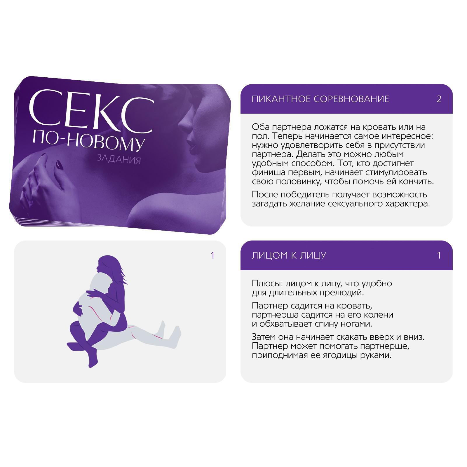 Откройте новые грани наслаждения! Хотите разнообразить сексуальную жизнь и подарить друг другу совершенно новые эмоции? Тогда эта игра — именно то, что нужно! Вас ждут уникальные развлечения, которые помогут узнать желания партнёра, раскрепоститься и испытать что-то новенькое. Растянуть удовольствие или попробовать всё сразу — решать вам! Что нужно делать? Разделите карты на две колоды: «Секс-развлечения» и «Секс-позы». «Секс-развлечения». Вытягивайте карточки из этой колоды, зачитывайте их содержание и воплощайте его в жизнь. Для некоторых развлечений вам может понадобиться реквизит. Лучше подготовить его заранее. «Секс-позы». Вытягивайте карточку из этой колоды, смотрите на изображение, читайте описание и воплощайте данную позу в жизнь. Вы можете остановиться только на одной колоде или сначала попробовать одну, а потом другую. А если есть желание поэкспериментировать, комбинируйте карточки между собой. В комплекте: 35 карт «Секс-развлечения», 15 карт «Секс-позы», правила игры.
