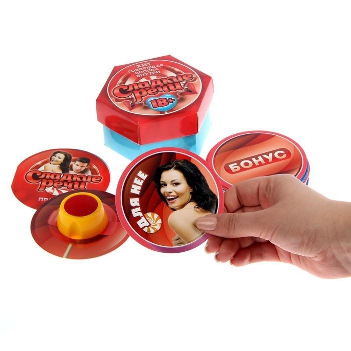 Игра для двоих с пикантной говорящей кнопкой. Узнайте самые интимные секреты друг друга — эта соблазнительная игра добавит в ваши отношения «перчинку». Вам предстоит ответить на самые откровенные вопросы! В игре вы найдёте колоду карт «Для него» и «Для неё», а также кнопку с изображением леденца. По очереди с партнёром тяните карту из своей колоды и откровенно отвечайте на пикантные вопросы. Если в вашей колоде попалась коварная бонусная карта — нажмите говорящую кнопку, и сладкий голос подскажет вам задание. Узнавайте друг друга, дарите партнёру страстные поцелуи… В наборе: 50 карточек говорящая кнопка правила игры.