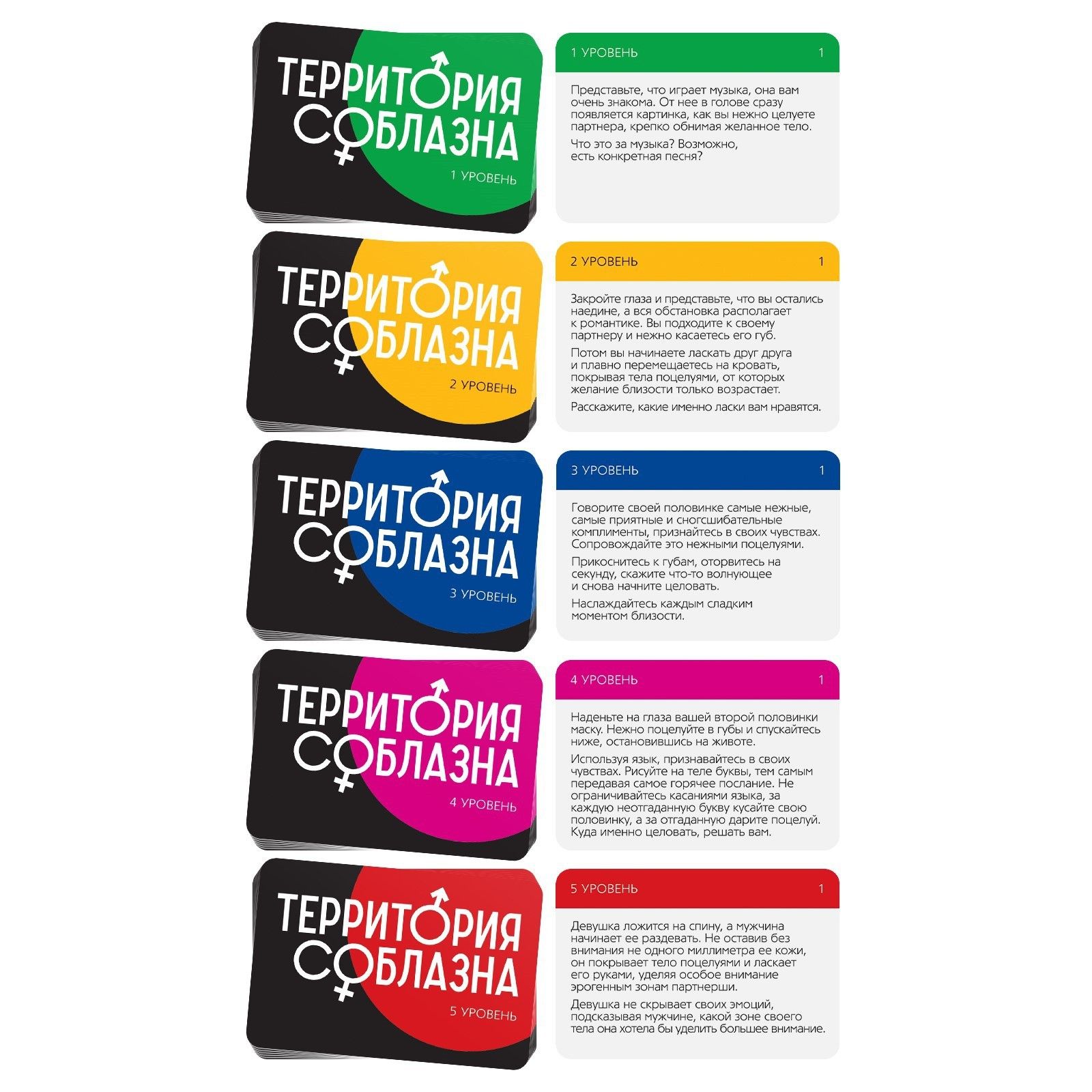 Окунитесь в мир романтических отношений в откровенной игре для двоих! Узнайте партнёра лучше и попробуйте ранее неизвестные способы наслаждения друг другом. Игра включает в себя 50 карточек с заданиями разного уровня сложности. Для начала воспользуйтесь колодой «Узнайте друг друга», она откроет много секретов партнера. С колодой «Смелые фантазии» возбудите воображение откровенными размышлениями на пикантные темы. С карточками «Нежные поцелуи» узнайте новые техники и способы доставить друг другу удовольствие, и тогда можете переходить к колодам «Ласкай меня» и «Сладкая близость» — они послужат достойным финалом романтической ночи. В набор входят приятные аксессуары, которые смогут разнообразить Ваши ласки. В комплекте: 50 карточек, правила, текстильная маска, щекоталка, атласная лента.